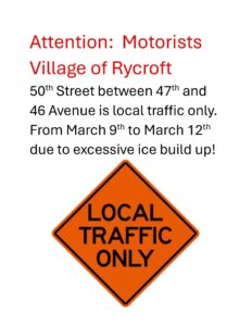 6:30 p.m. in the Village Council Chambers located at 4703-51 Street in Rycroft. Everyone Welcome! The agenda package is published the Friday before the Council meeting. Click above on COUNCIL, then AGENDAS & MINUTES to view the agenda package.